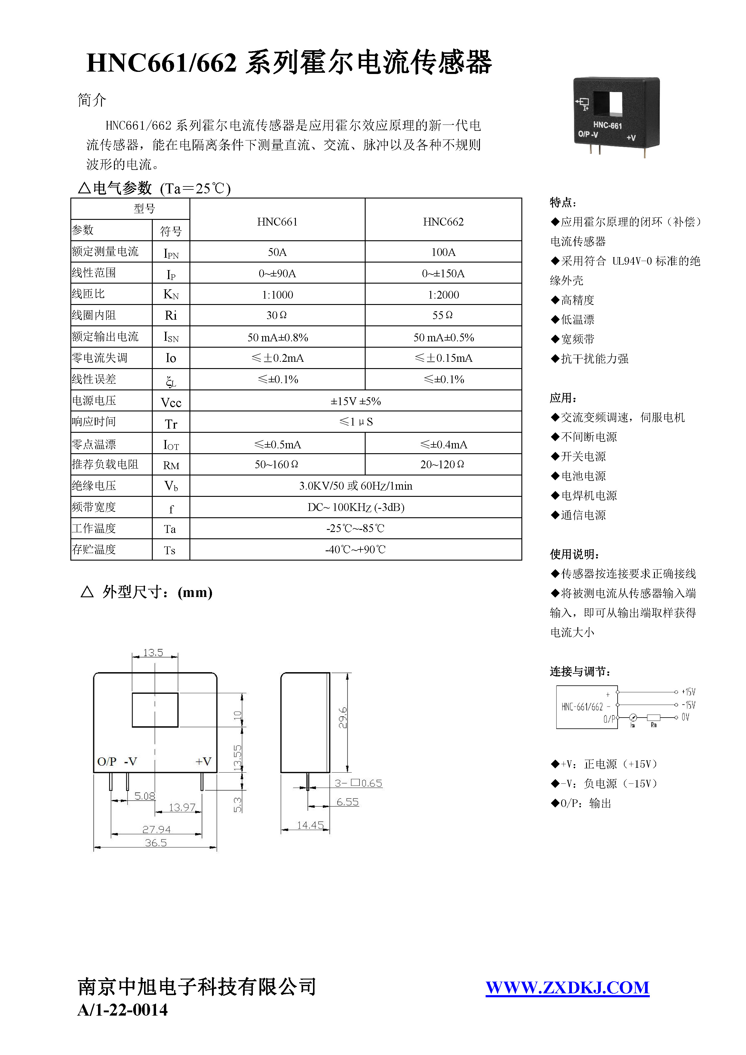 HNC-661系列霍爾電流傳感器是應(yīng)用霍爾效應(yīng)原理的新一代電流傳感器,能在電隔離條件下測量直流、交流、脈沖以及各種不規(guī)則波形的電流。